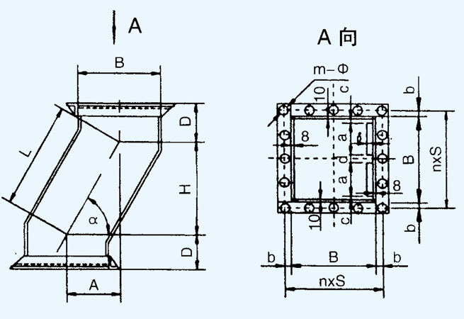 方形帶襯板雙法蘭彎管