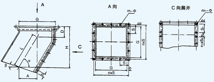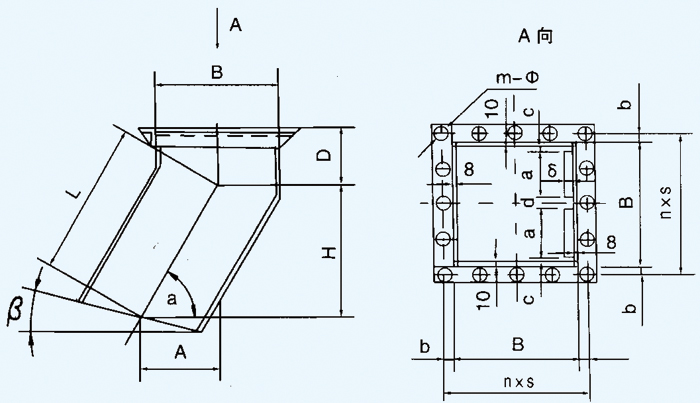 帶式輸送機寬度與落煤管配合 B=500mm 落煤管選用 450x450 B=650mm 落煤管選用 600x600 B=800mm 落煤管選用700x700 B=1000mm 落煤管選用800x800 B=1200mm 落煤管選用900x900 B=1400mm 落煤管選用1000x1000 說明:1、圖中L值在1500-2010,β=0-35°之間選用; 2、選用時需在布置圖的設備中備注欄內注明L值; 3、450x450落煤管襯板為一個Q,表中質量均為L=1100mm計算; 4、為達到防腐目的,落煤管采用防腐材料整體鑄造或易磨損部位采用防磨材料整體鑄造,其它部位用普鋼組合制造。 |
