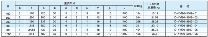 說明:1、表中尺寸和質量系按L=1100毫米編制;2、圖中已包括上部聯(lián)接用緊固件;3、管體采用耐磨材料整體鑄造。